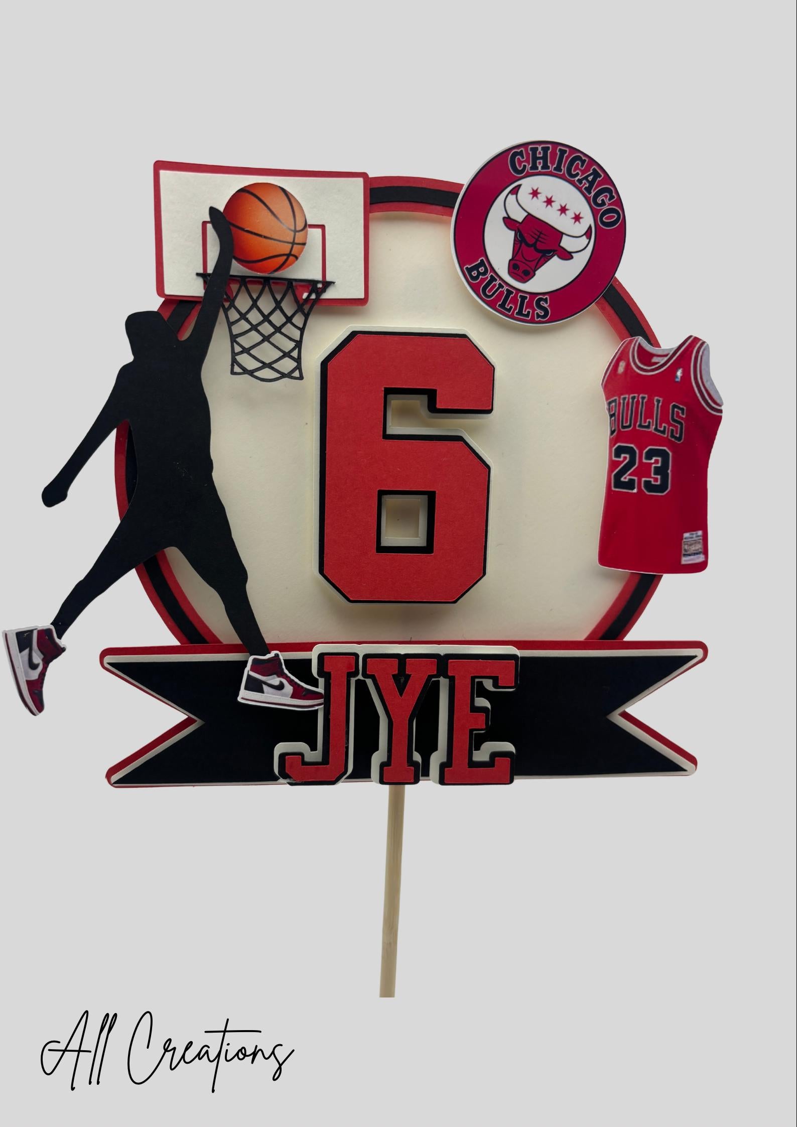 Personalised Chicago Bulls cake topper. This cake topper is made by hand with good quality card stock paper. It can be used as a vocal point for a birthday cake.