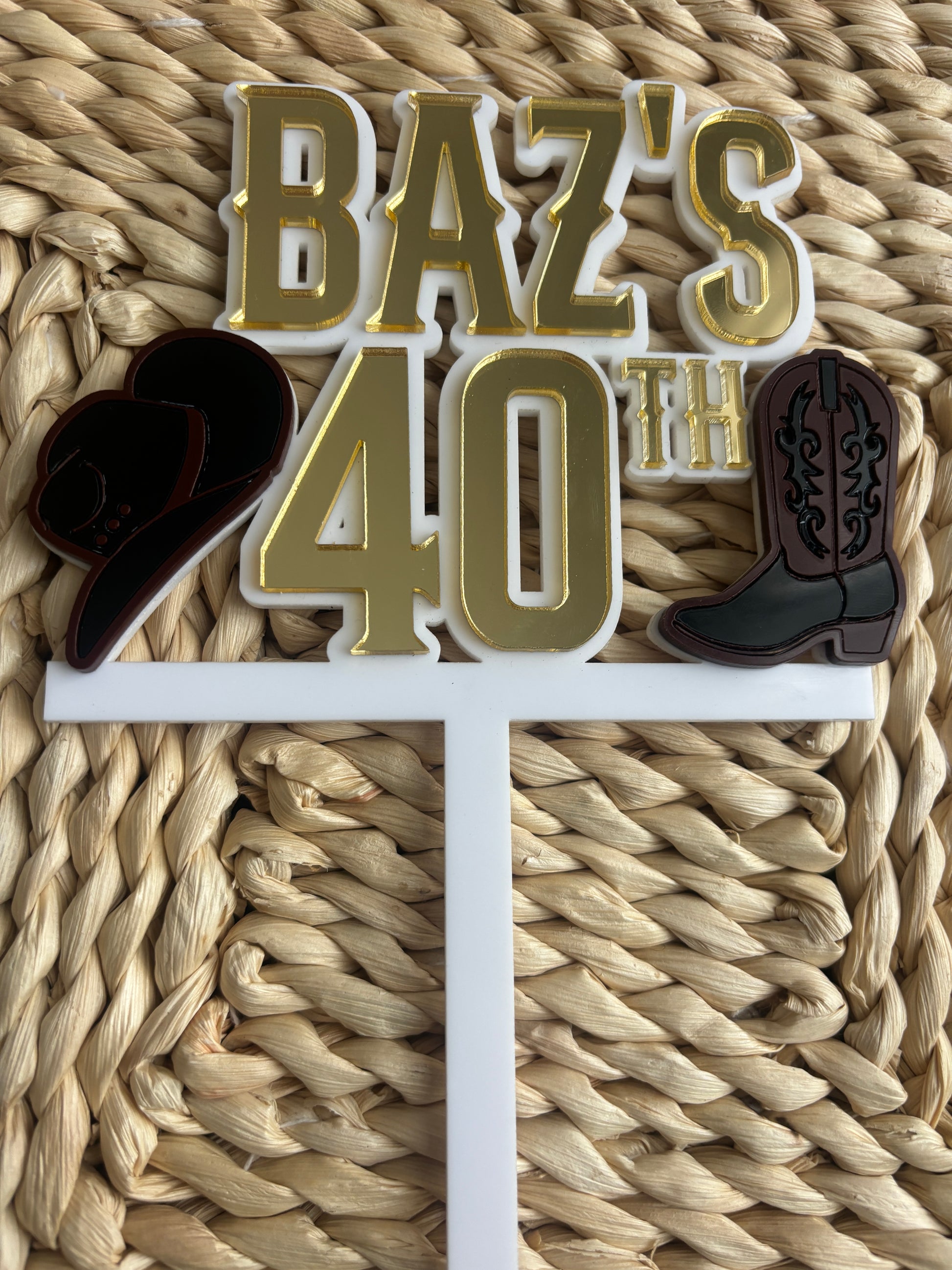 Personalised Cowboy cake topper / Country and western theme party / Acrylic topper